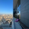 Hochgelegene Wohnung im Henningerturm (21. Stock) mit großartigem Skyline-Blick und imposantem Balkon. Moderne (fast unsichtbare) Küche im großen Wohnbereich.