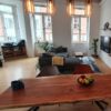 Der Hingucker ist das großräumige Wohnzimmer mit 4m hohen Decken und großen Fenstern, die viel Sonnenlicht reinlassen und den Raum noch heller erstrahlen lassen.