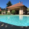 Mediterrane Villa mit stilvollem Pool mit Innentreppe.